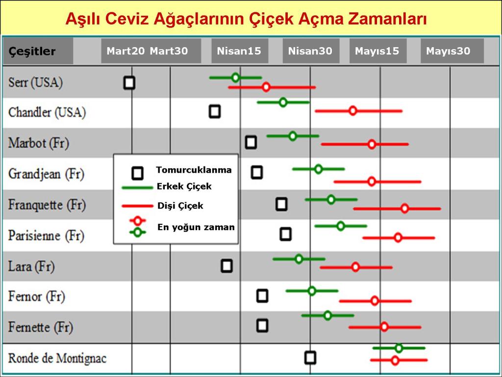 Tabloda görüldüğü gibi aşılı ceviz çeşitlerinin hangi tarihlerde;